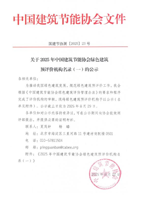 近日,集團(tuán)憑借旗下綠建公司在綠色建筑領(lǐng)域的深厚技術(shù)積累與專(zhuān)業(yè)服務(wù)能力,成功牽頭申報(bào)并獲得中國(guó)建筑節(jié)能協(xié)會(huì)首批認(rèn)定的“綠色建筑預(yù)評(píng)價(jià)機(jī)構(gòu)”。